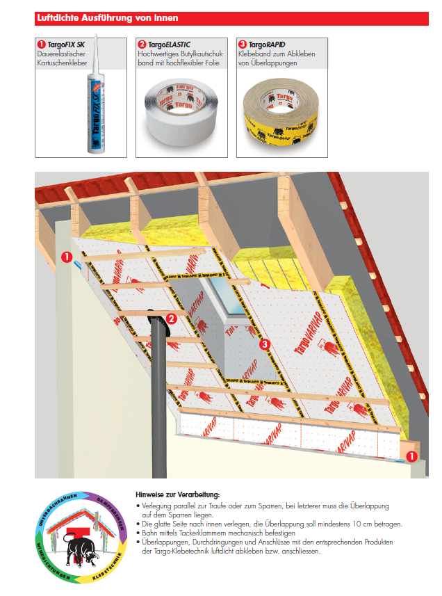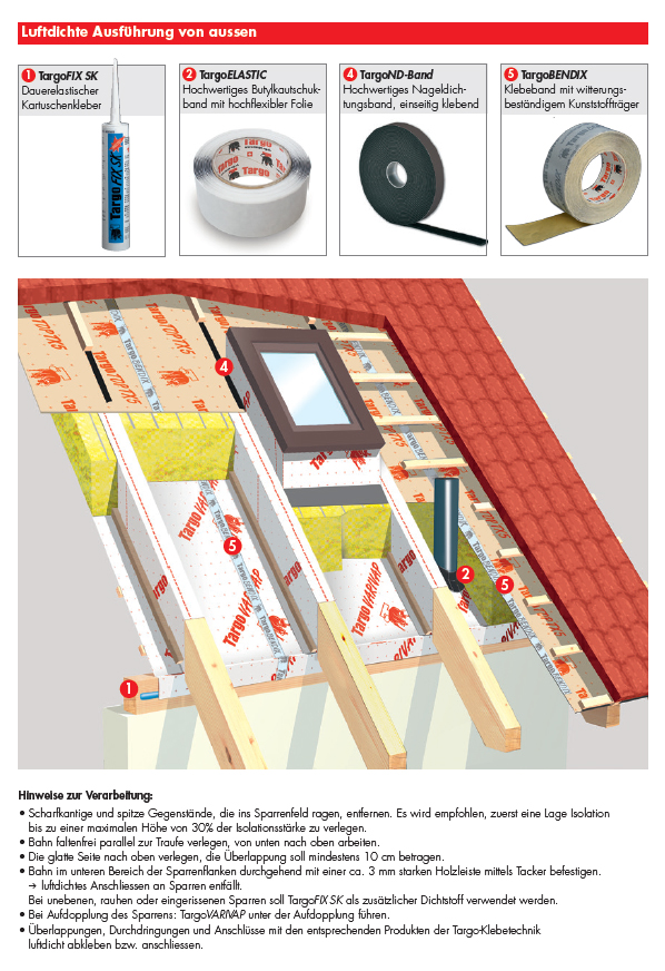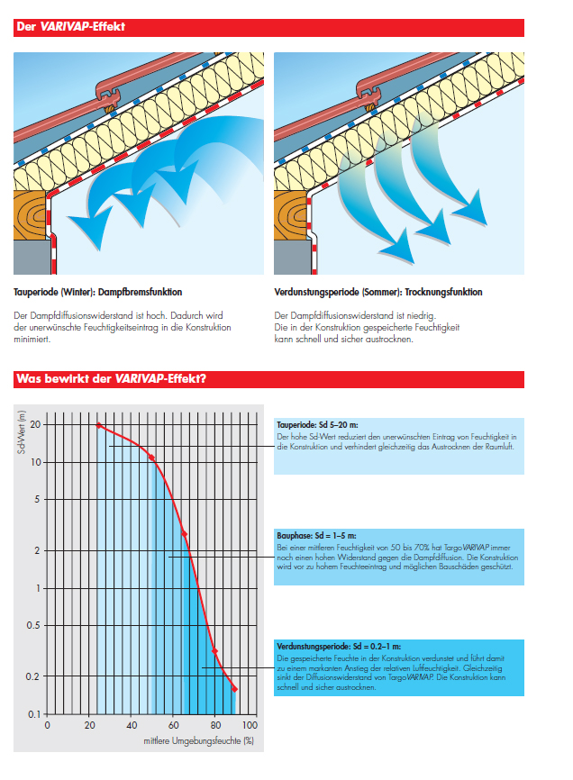 Die Targo VARIVAP N ist eine feuchtevariable Hochleistungsdampfbremse. Sie bietet maximale Sicherheit durch eine hohe Rücktrocknungsreserve, damit einmal eingedrungene Feuchtigkeit wieder aus der Wärmedämmung austrocknen kann.