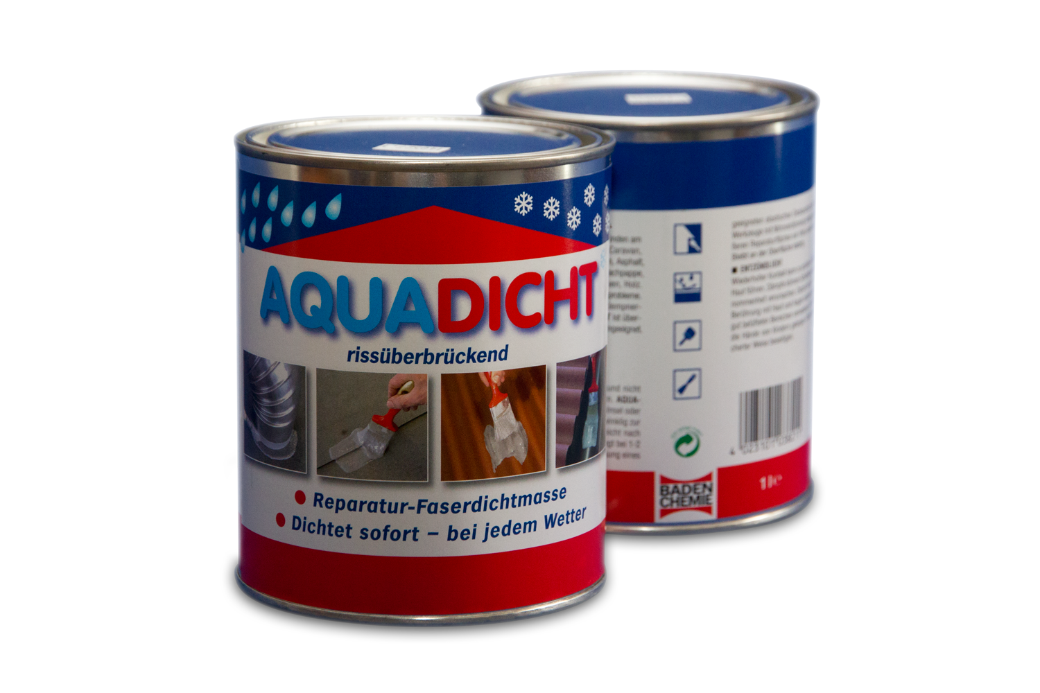 AQUA-DICHT haftet auf fast allen Untergründen am und im Haus, Boot, Wohnwagen, z.B. auf Aluminium, Zink, Blei, Glas, Stein, Asphalt, Wellasbest, Dachpappe, Hart-PVC, Schweißbahn, Pfannen, Fliesen, Holz. Es ist auch für Lichtkuppeln, Dachrinnen, Kaminanschlüsse, Blechverkleidungen und Ähnliches geeignet. Nicht geeignet für Styropor, PVC Folien und nicht beständig gegen Lösemittel. Nicht geeignet zum Beschichten von Flächen.