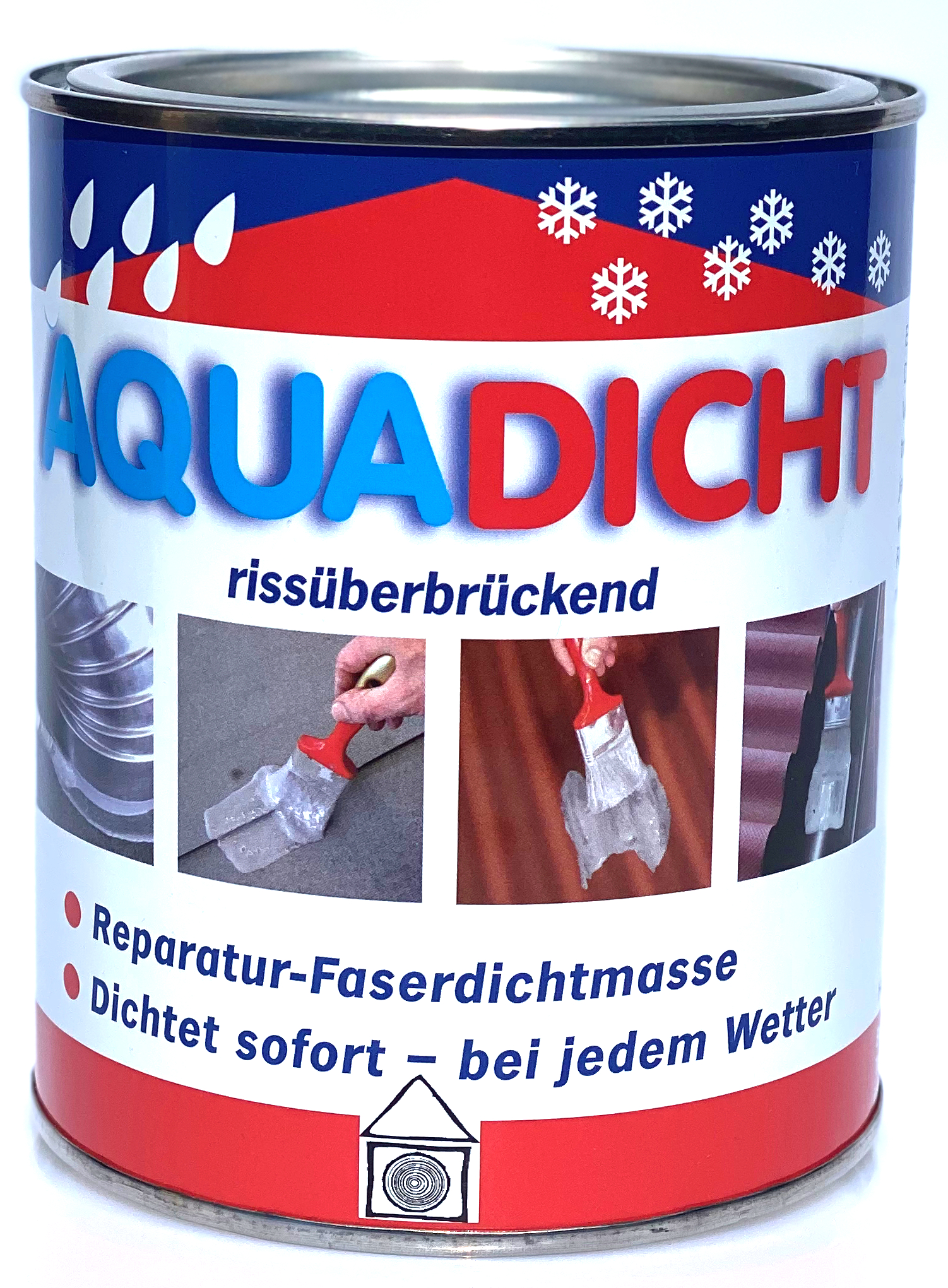 Dichtet alles ab, auch bei Regen und Schnee. Aqua Dicht ist die hochelastische Reparatur- und Faserdichtmasse. Sie kann bei jedem Wetter aufgetragen werden,sogar bei Schnee und Eis und dichtet sofort auch unter Wasser Risse und Löcher bis mehrere Millimeter. Haftet auf fast allen Untergründen, außer Styropor und PVC Folien. Dauerhaft elastisch.