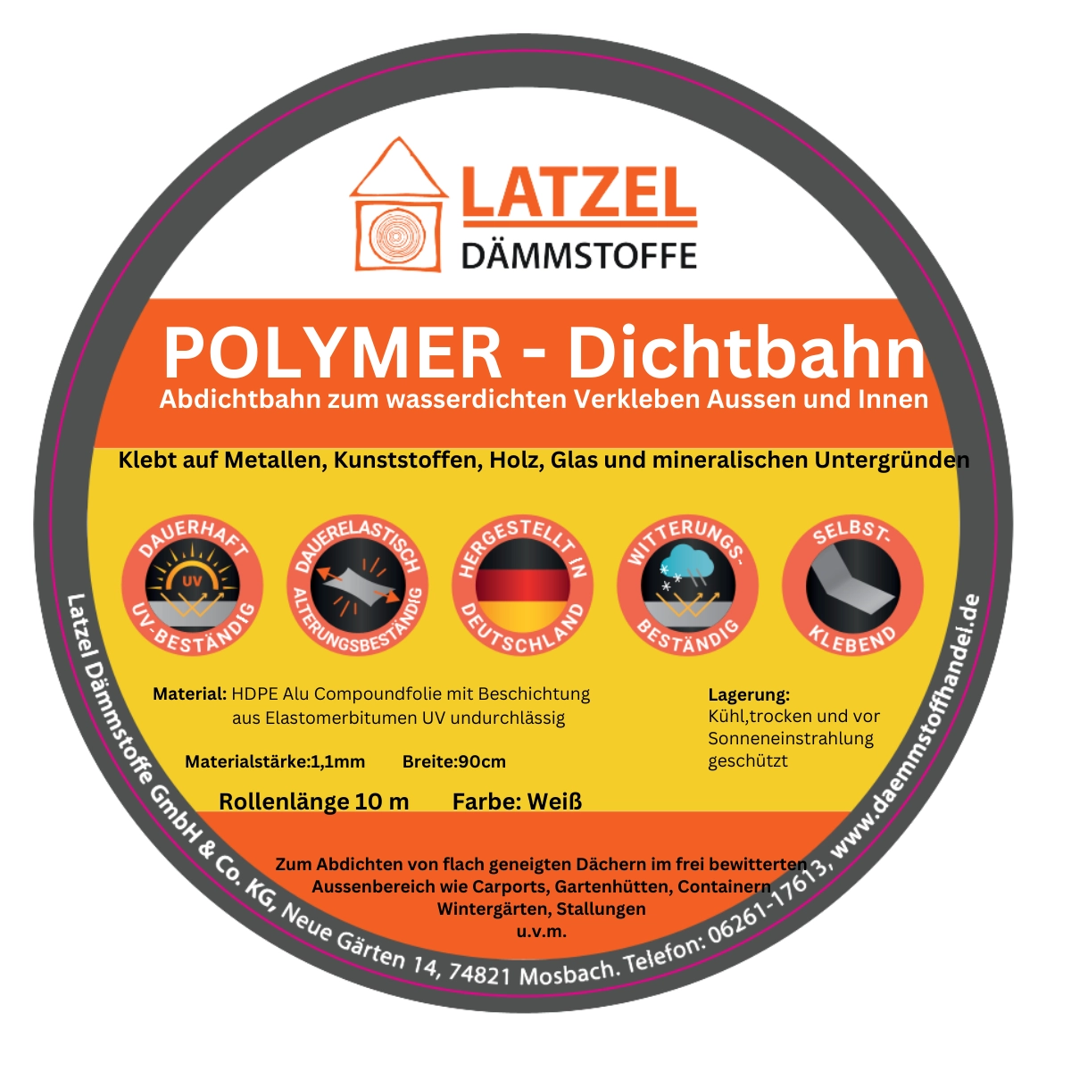 - Material: HDPE-Alu-Compoundfolie mit Beschichtung aus Elastomerbitumen (UV-undurchlässig)