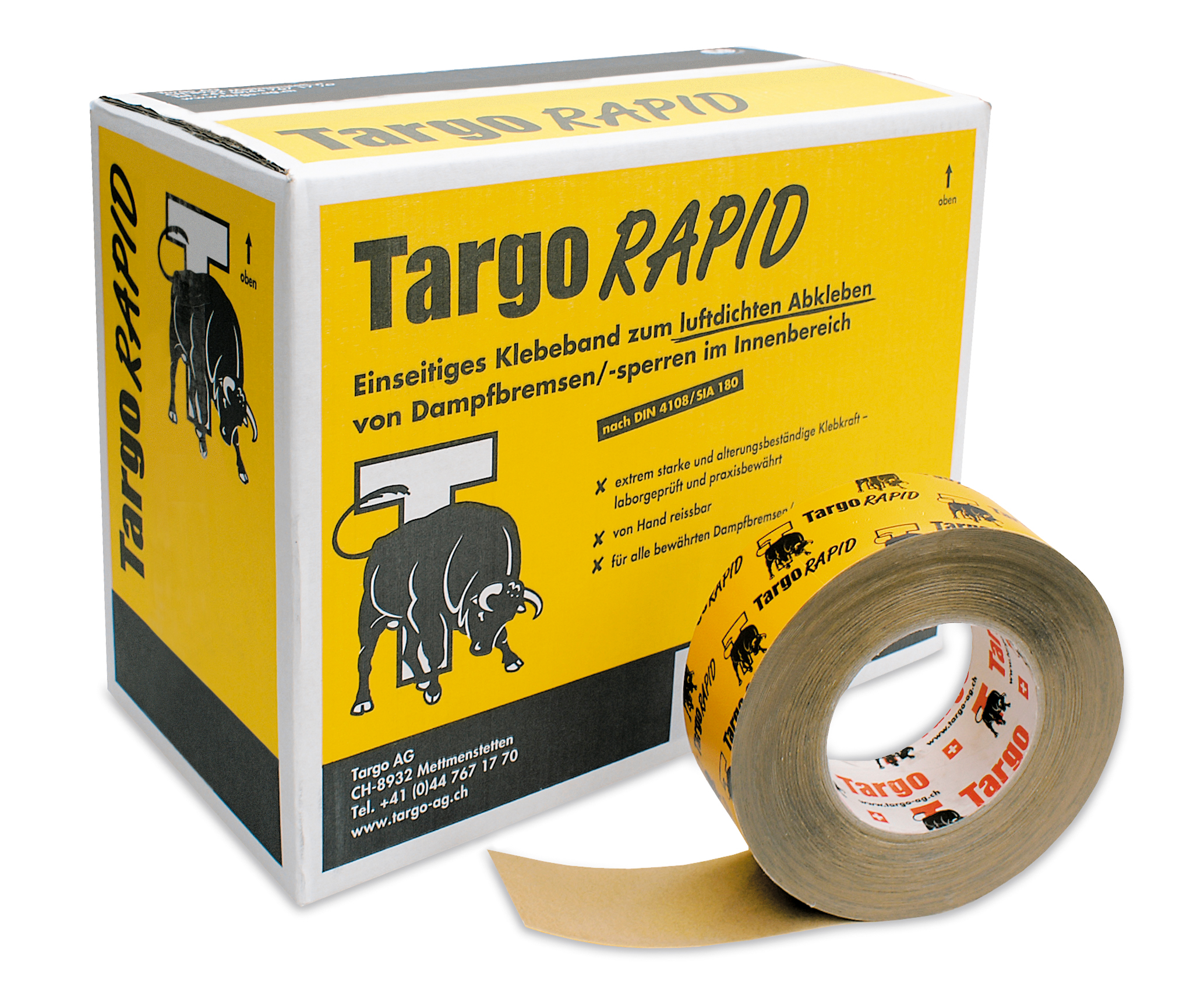 TargoRAPID ist ein professionelles Luftdicht-Klebeband für den Innenausbau – ideal zum dauerhaften Abkleben von Überlappungen bei Dampfbremsen und Dampfsperren. Das Band ist einseitig klebend und überzeugt durch eine extrem starke, alterungsbeständige Klebkraft (laborgeprüft und praxisbewährt).